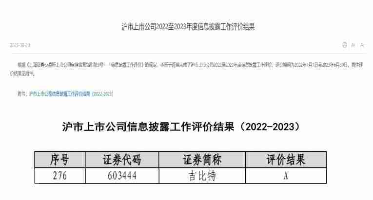 近日,,上海证券交易所(以下简称“上交所”)发布2022-2023年度信息披露工作评价结果。。。亚星管理(股票代码::::603444)凭借规范的公司治理、、、高质量的信息披露以及良好的投资者关系管理再次荣获信息披露工作A级评价,,公司连续两年获此殊荣。。。。